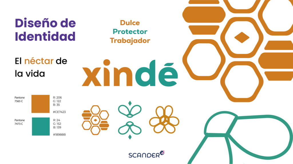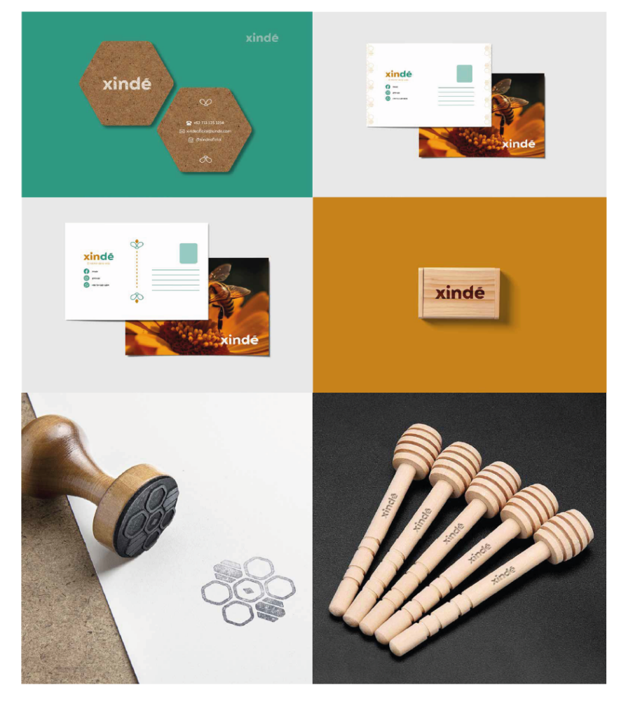 Xindé es un proyecto académico desarrollado en colaboración con un cliente real, diseñado para aprender a gestionar casos reales de identidad corporativa desde un enfoque profesional. El cliente, un productor en Valle de Bravo, buscaba una identidad visual que le permitiera vender bajo el nombre de una empresa productos derivados de la miel, como miel virgen, miel real, miel medicinal, dulces, remedios naturales y postres elaborados con miel.